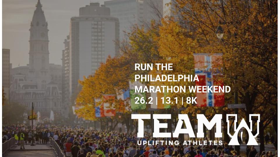 Join Philadelphia Marathon Weekend as a charity runner for Uplifting Athletes — full marathon, half marathon, or 8K. Every mile you run turns athletic effort into hope for the 30 million Americans living with a rare disease.